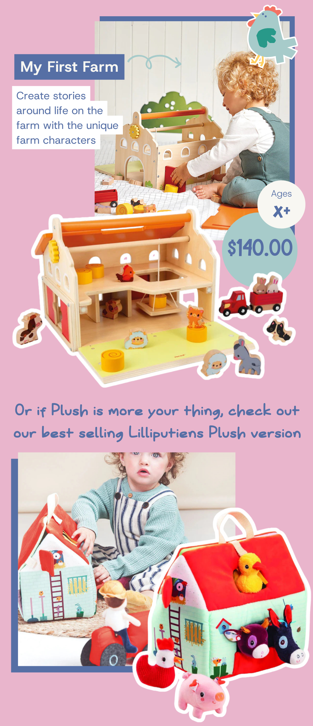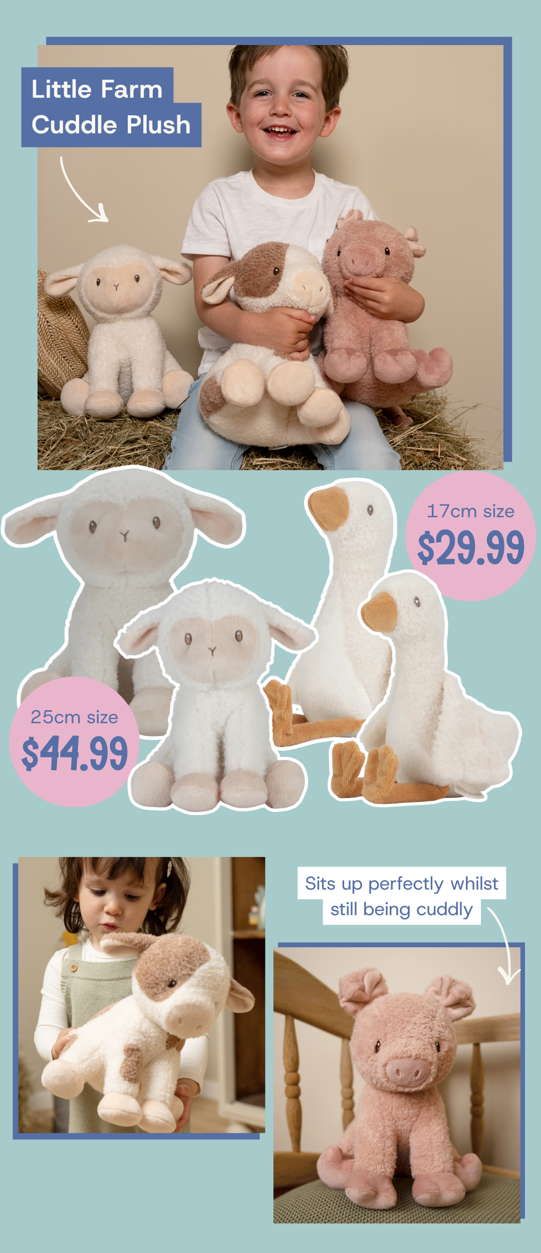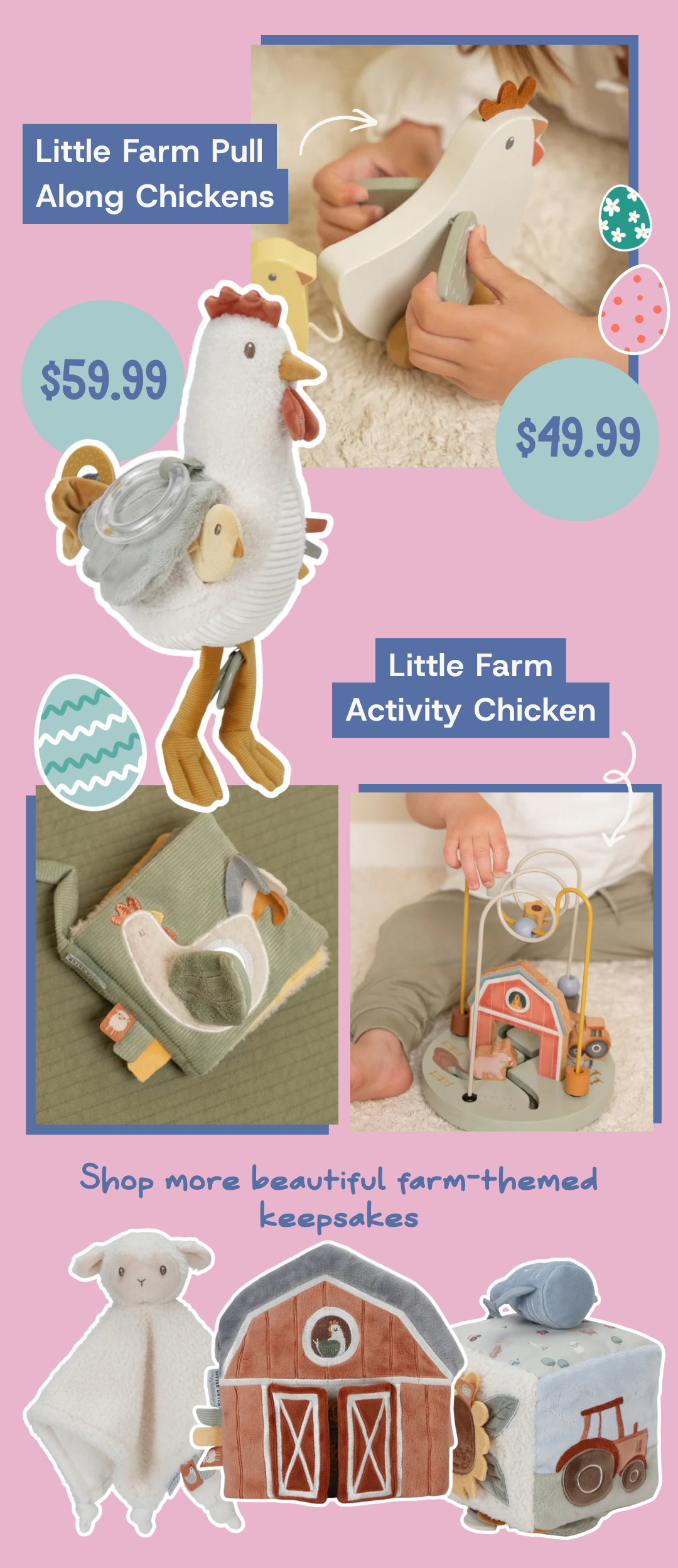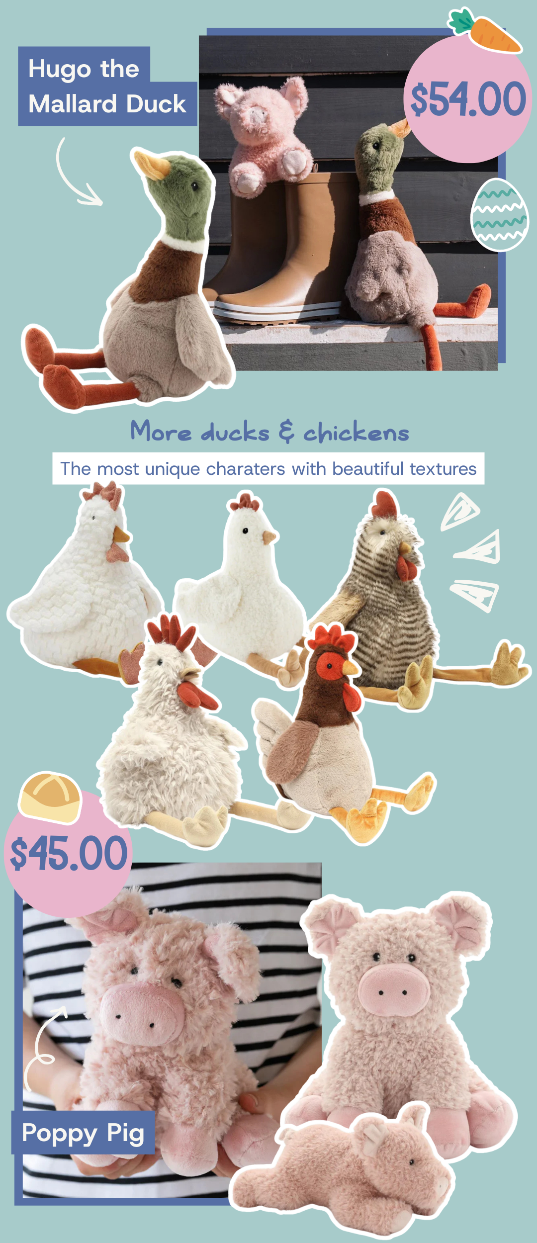 Our plush collection is filled with more than just bunnies. Celebrate Spring and the motif of new life with these beautiful farm-themed plush!