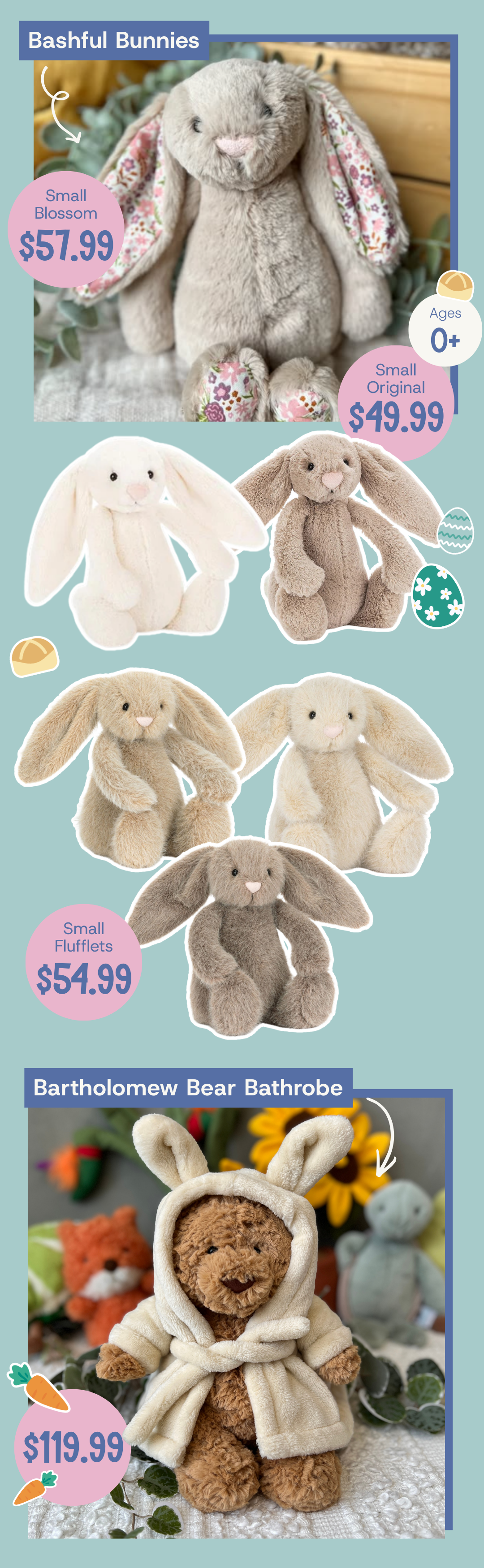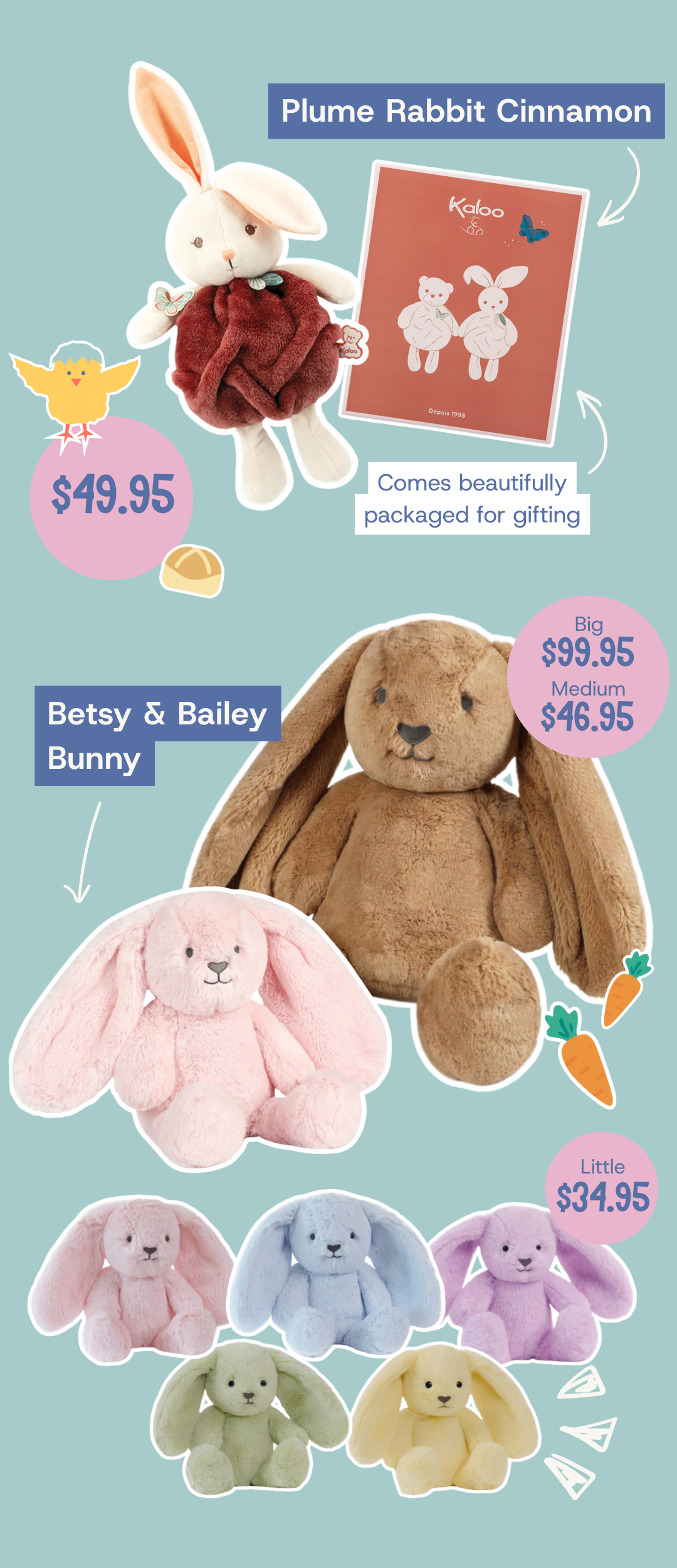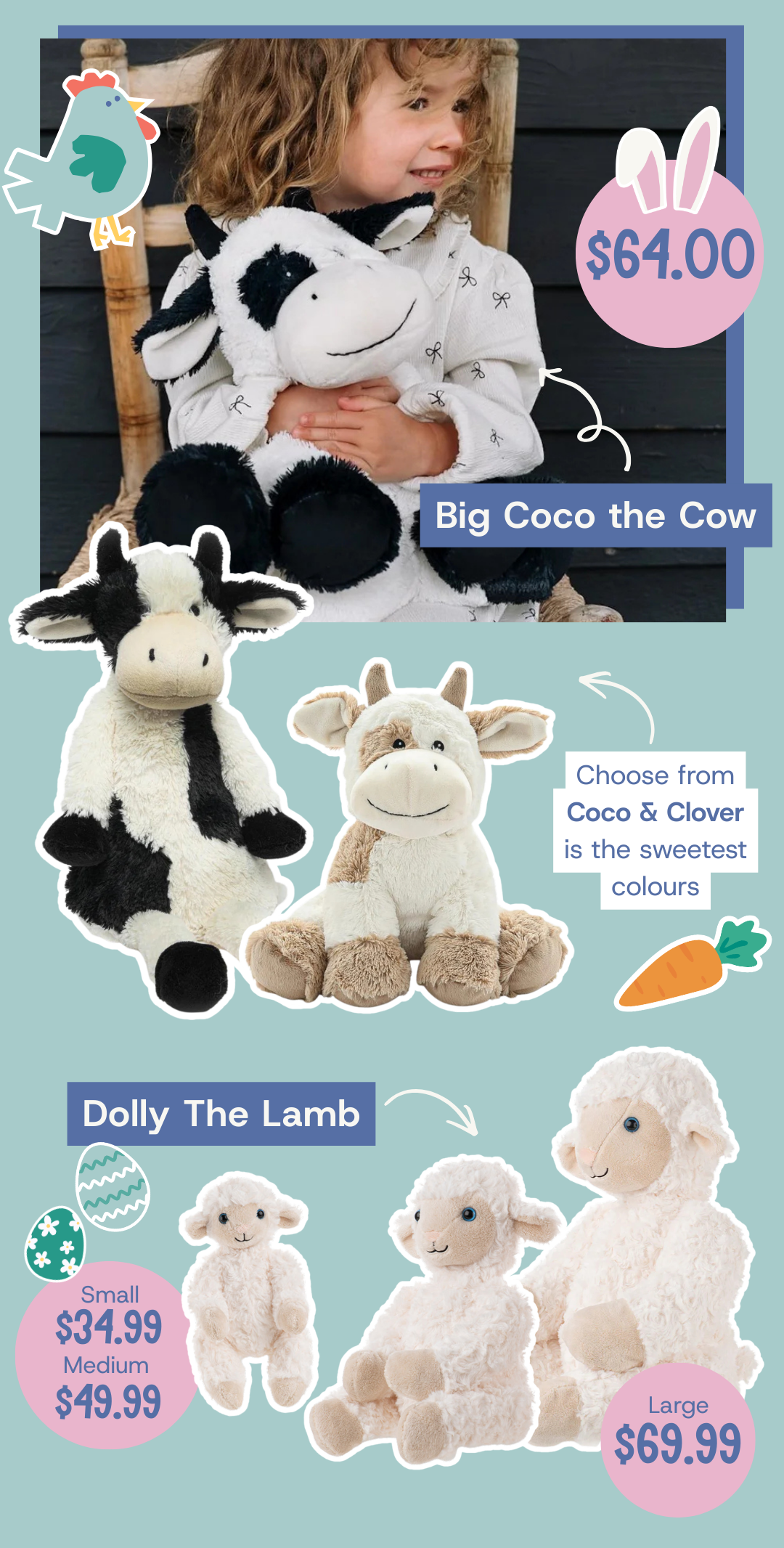 It wouldn’t be Easter without a Bunny! These buns are all incredibly cuddly, soft and full of character.