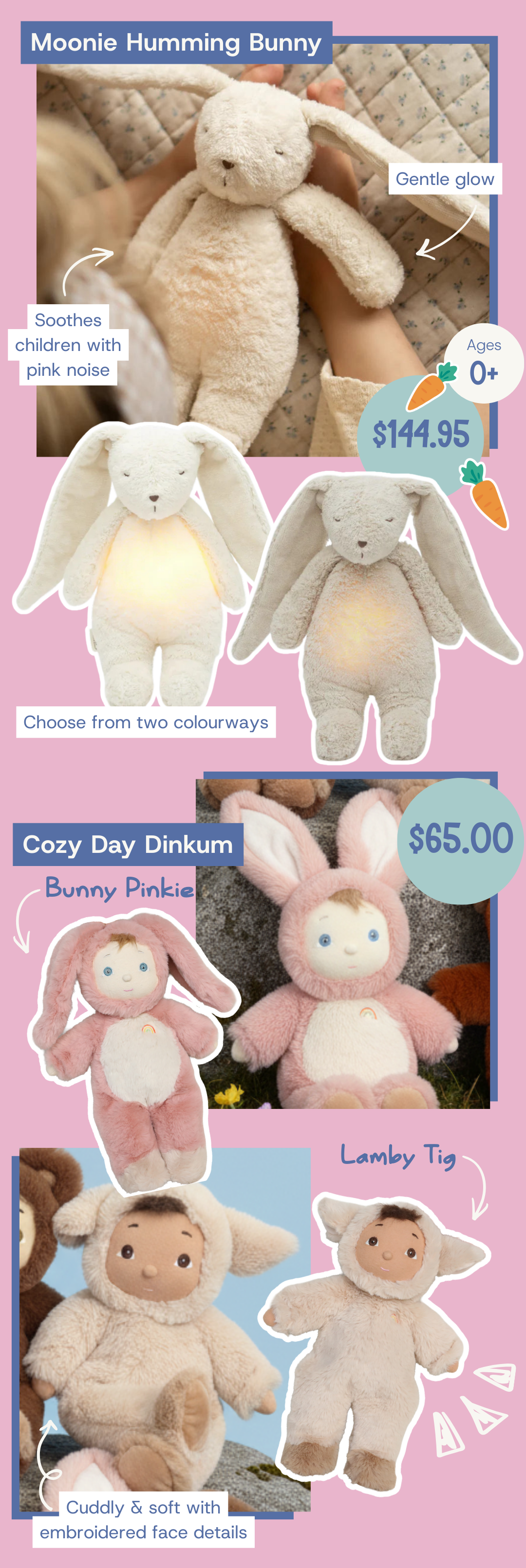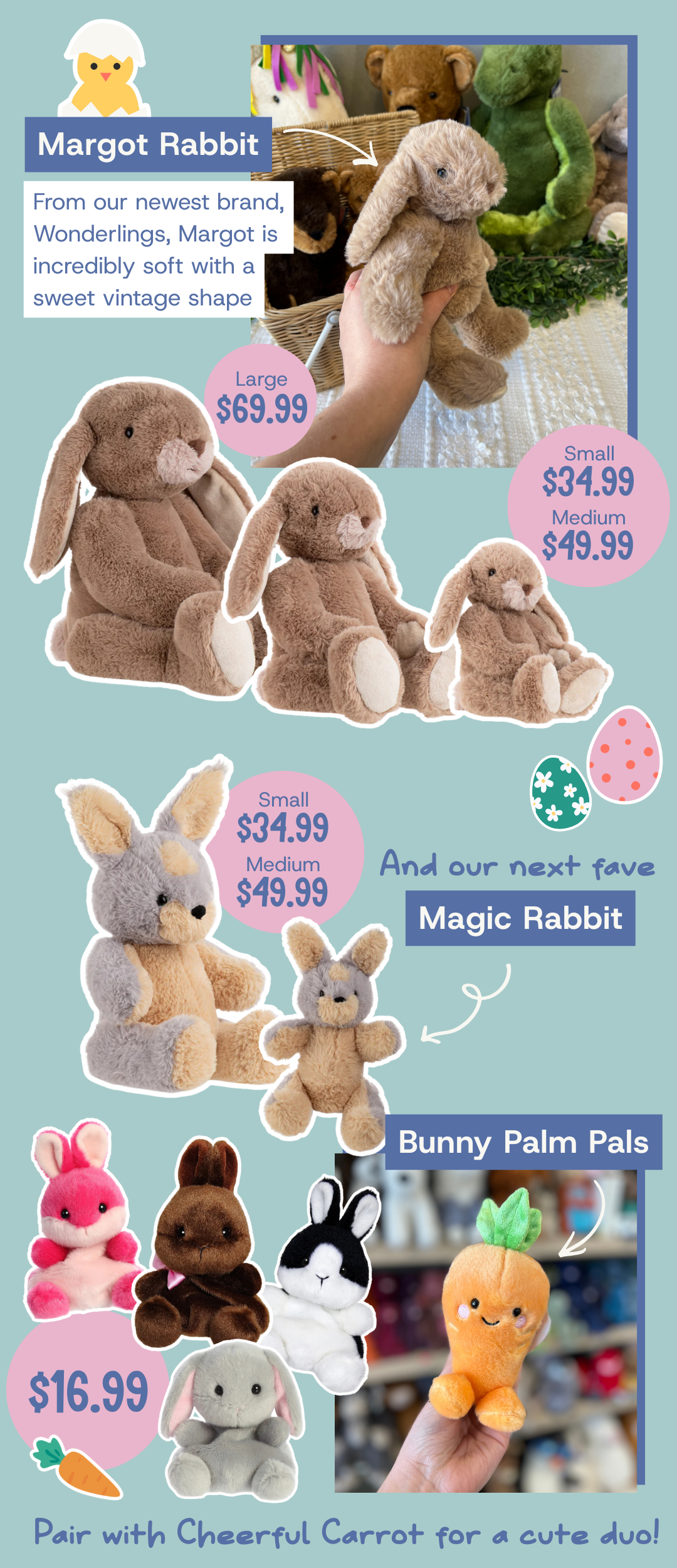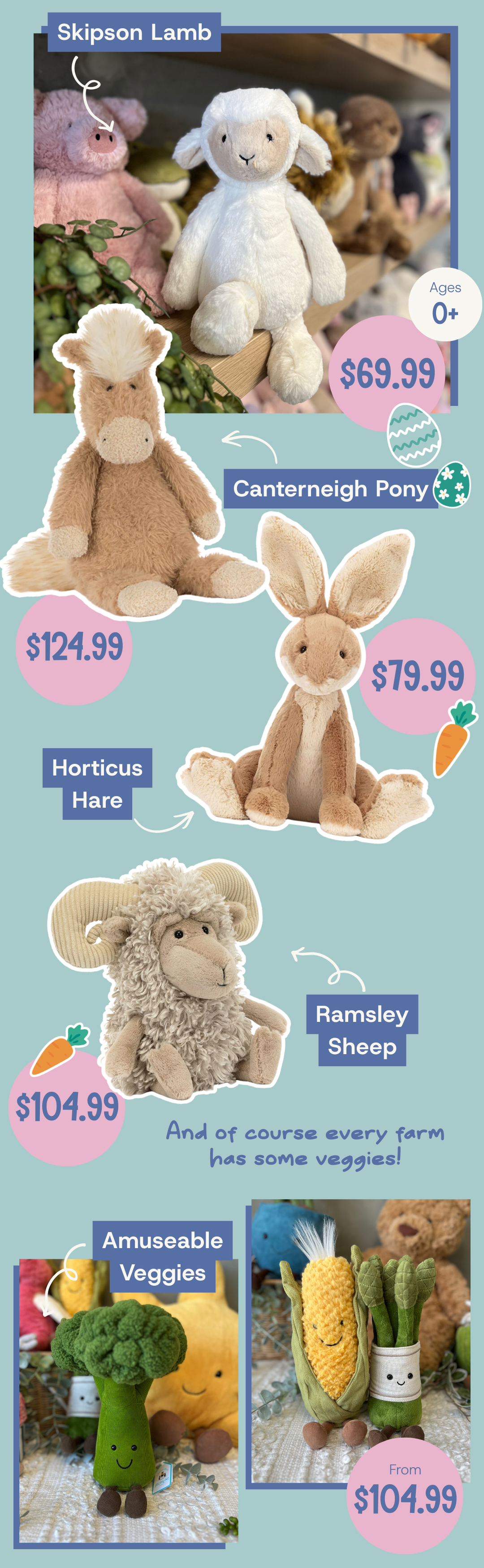 It wouldn’t be Easter without a Bunny! These buns are all incredibly cuddly, soft and full of character.