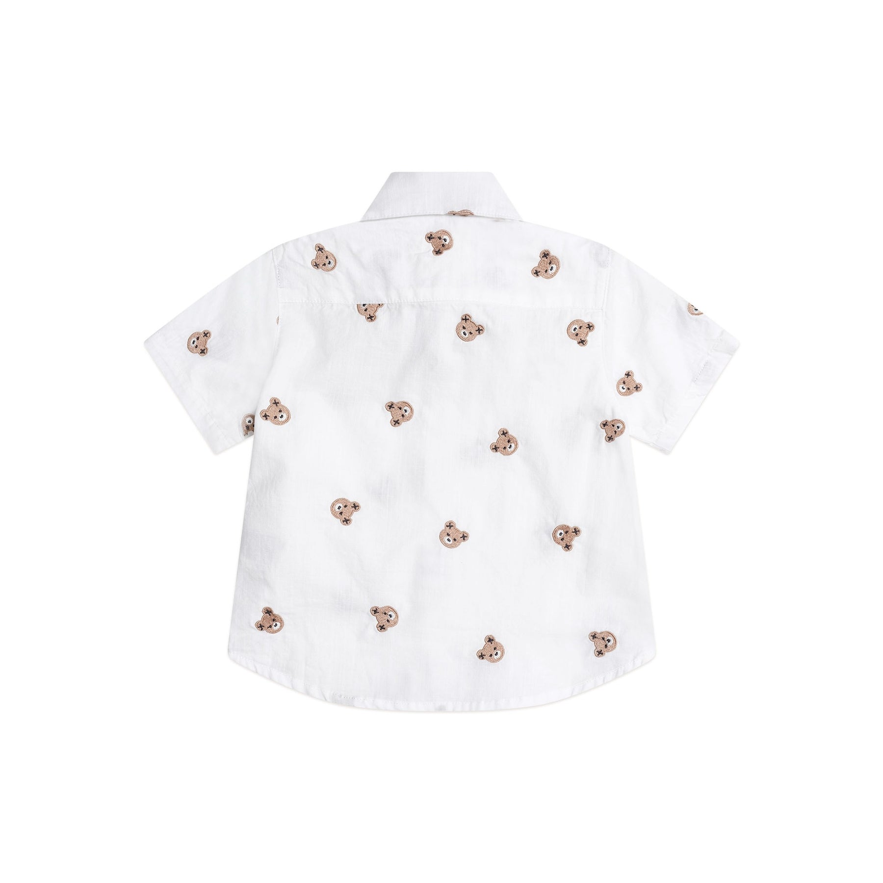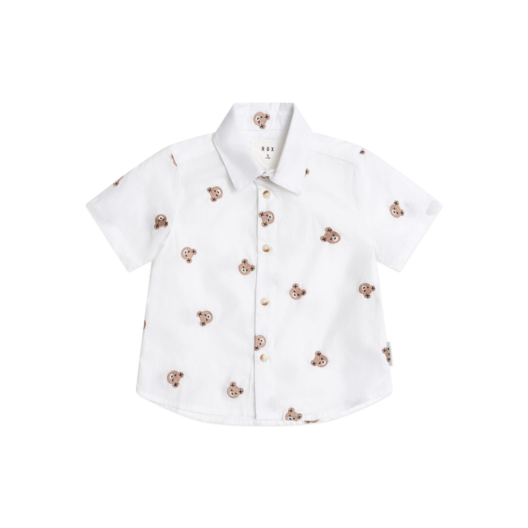 The perfect short sleeve button down shirt. In a classic crisp white made from beautiful cotton with a relaxed casual fit and point collar. A timeless style, featuring cute all over embroidered Huxbears.