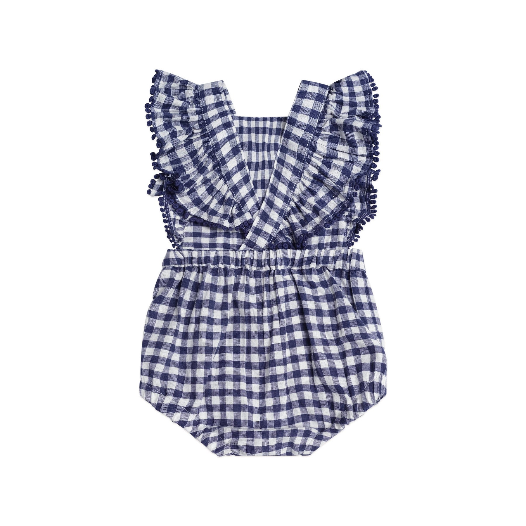 The prettiest playsuit you’ve ever seen. Made from gingham check cotton, it features exaggerated shoulder ruffles and adjustable straps for the perfect fit. Wear it alone or layer it with a tee. All sizes include stainless steel crotch snaps for easy dressing.