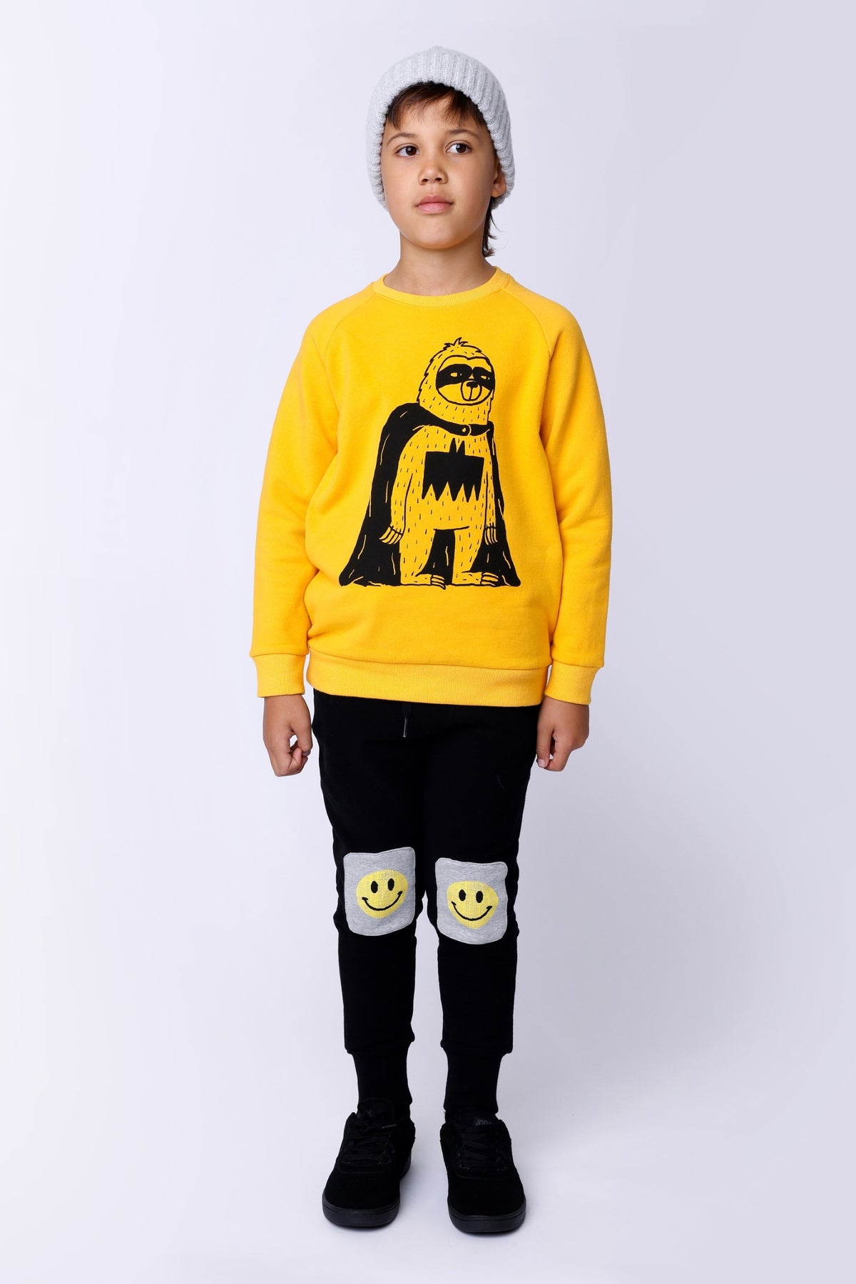 Minti Pixelled Face Furry Trackies - Black/Grey Marle