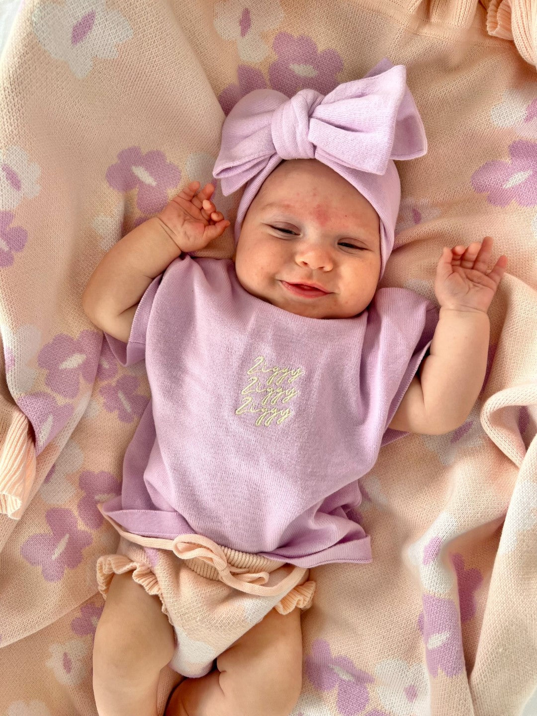 Knitted bloomers featuring the Ziggy Lou Flora design and a gorgeous frill leg detail. Mix and match with their Flora Summer Collection. An elastic waist and functional drawstring to create the perfect fit.