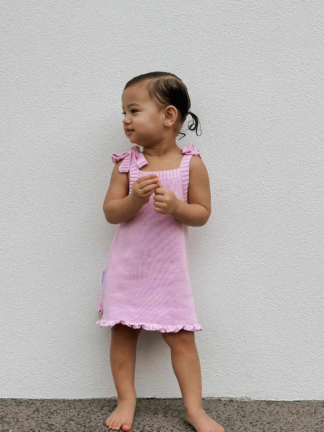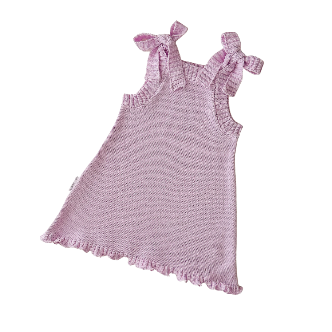This thin knit dress in Ziggy Lou's beautiful Lilac colour is the perfect year round staple. Easy to layer in the cooler days with long sleeve tops, ribbed bodysuits or tees and the perfect light weight dress for Summer. Adjustable ties at shoulder for the perfect fit and added detail.