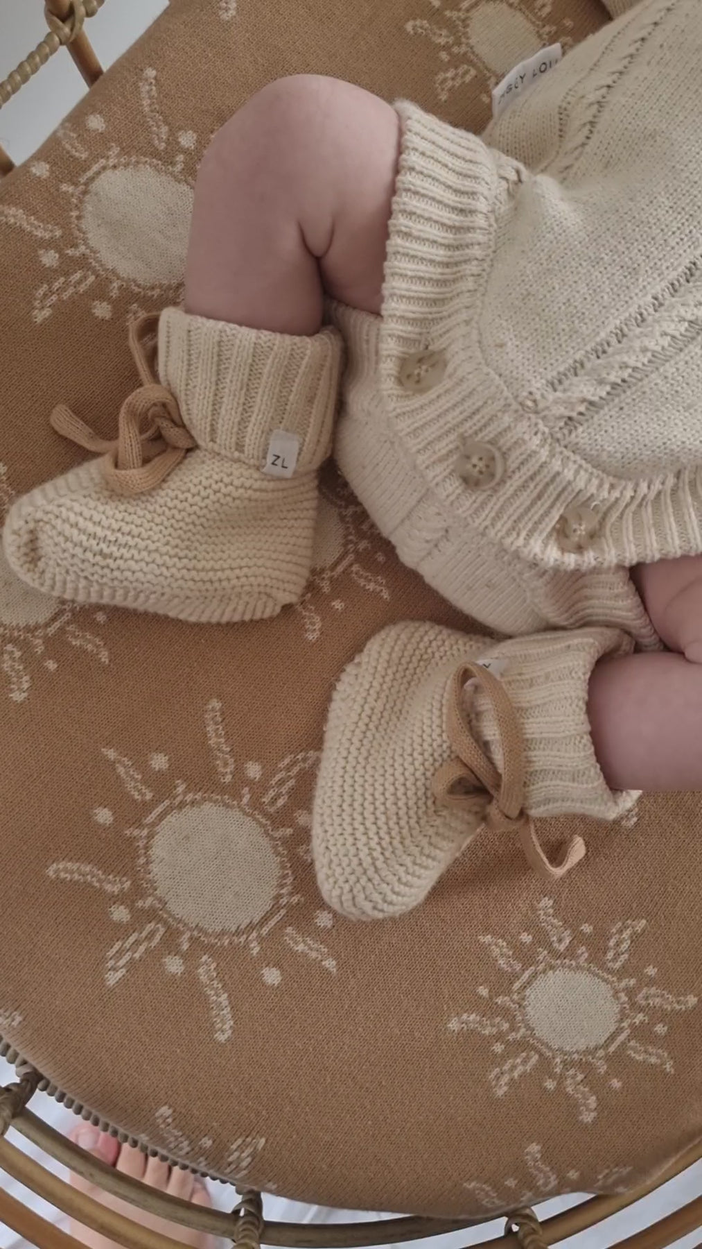 A beautiful Biscotti Fleck knitted romper, with gorgeous braid detail, thick cuffs and a relaxed fit around the bodice. Designed to be a timeless keepsake to remember just how teeny, tiny they were. An heirloom piece to pass down to other siblings or a special something to pop in their keepsake box. Matching booties + beanie available in our Biscotti Fleck Winter Collection. Our Biscotti Fleck colour has been created and custom dyed exclusively to Ziggy Lou.