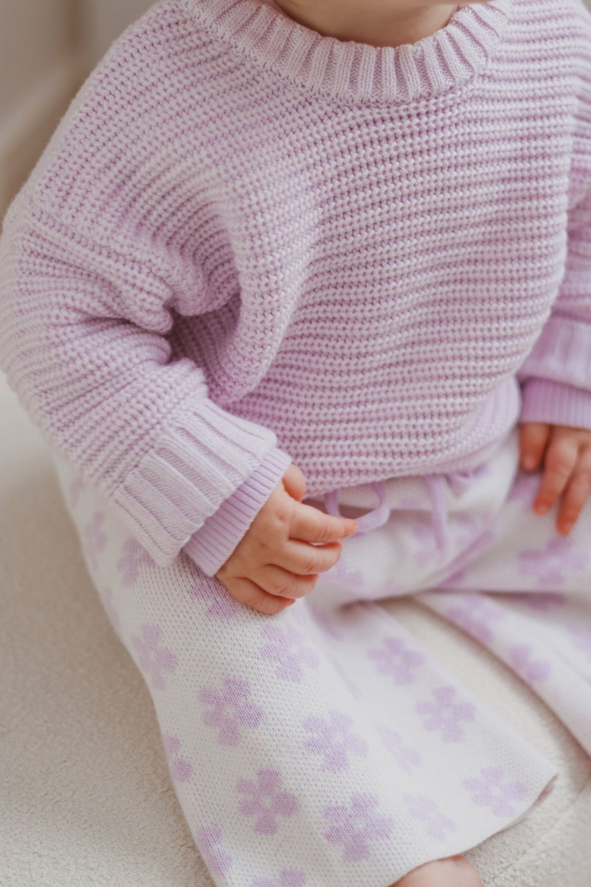 Our Lavender side stitched knitted jumper is a two toned jumper creating a vintage, washed look. The perfect staple piece year round. Matching beanie also available.