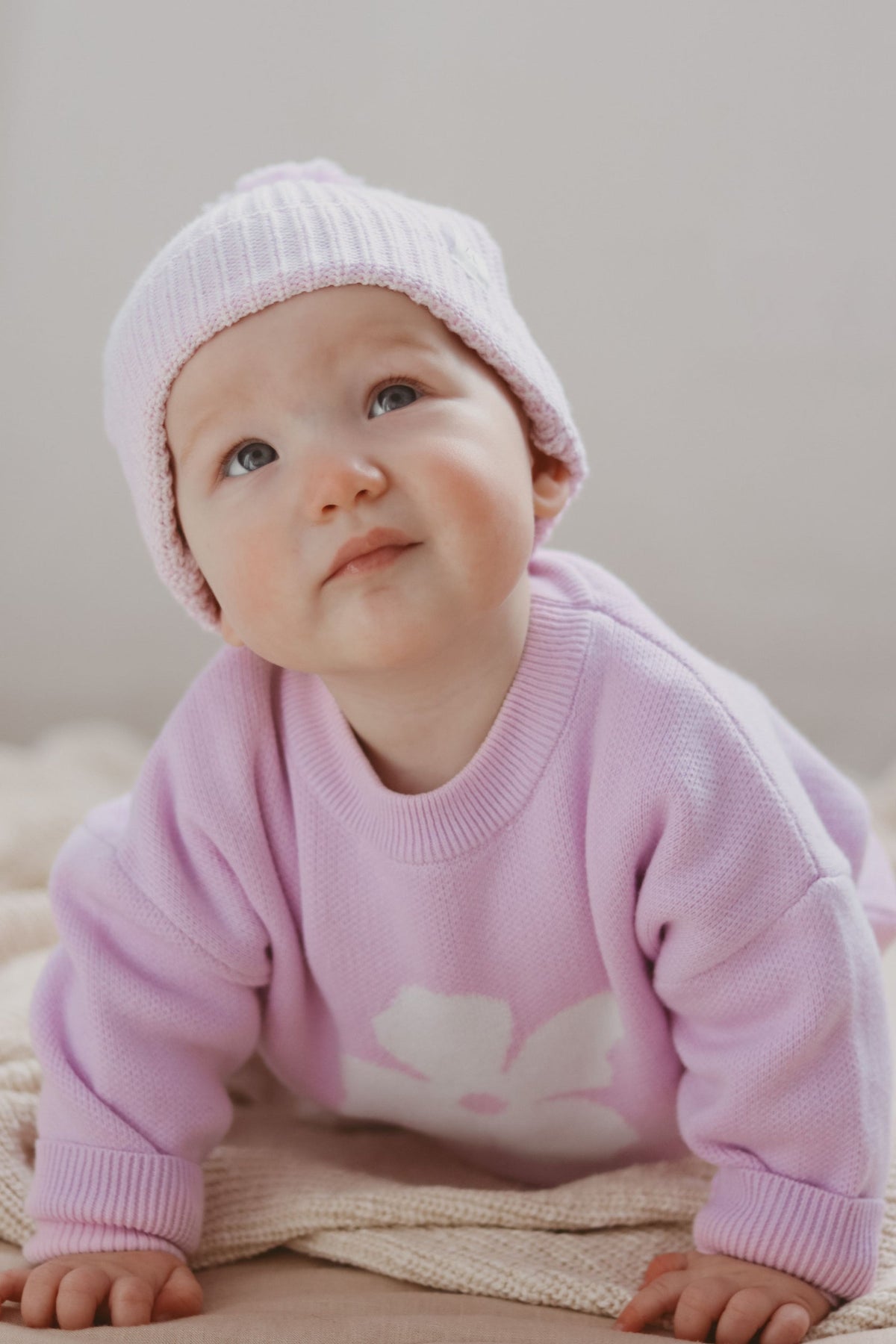 Our beautiful knitted Lilac Floral jumper is the perfect year round staple.
