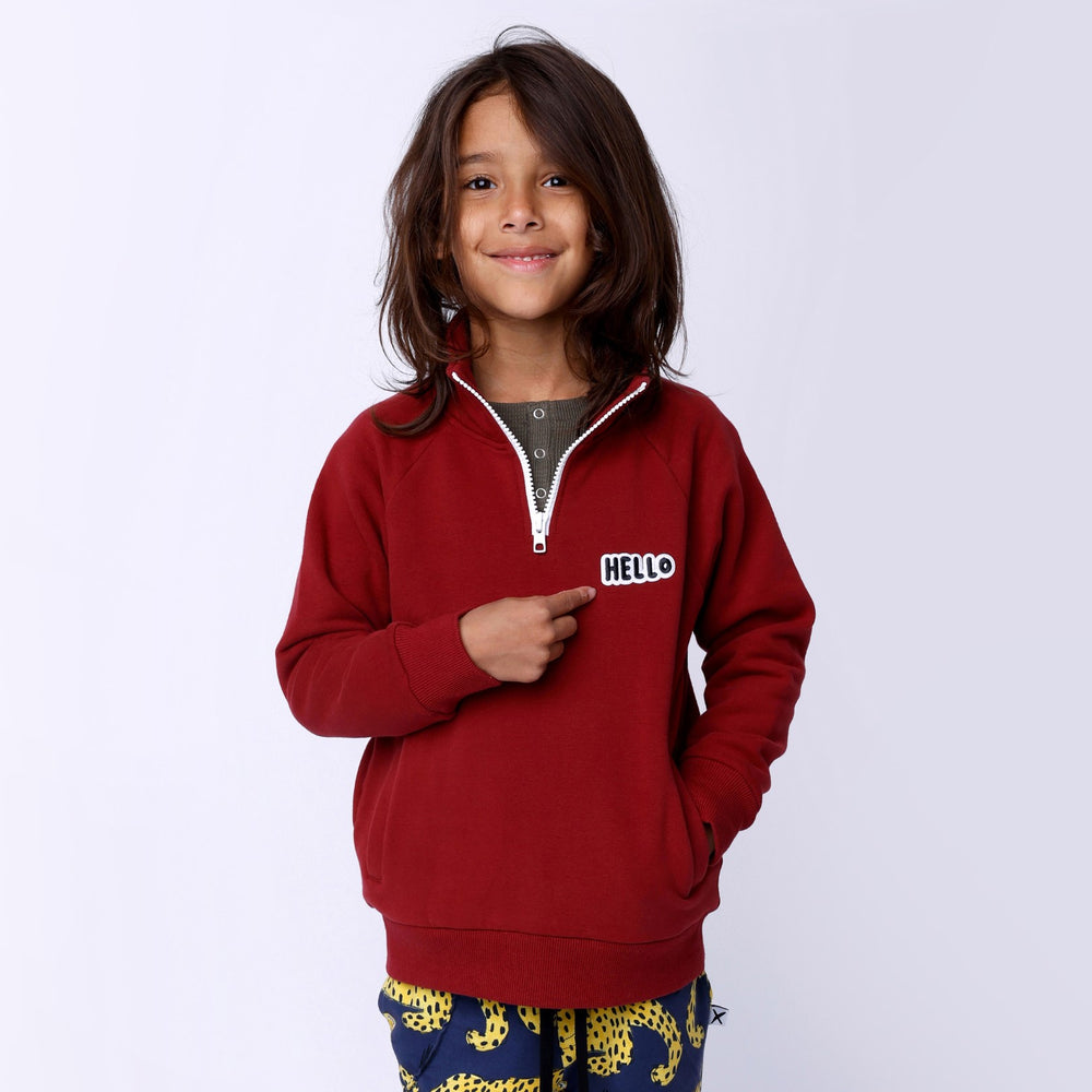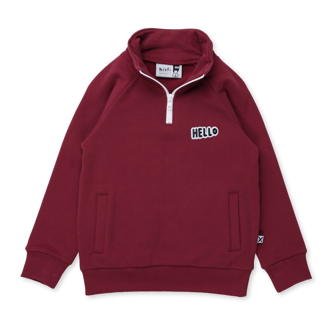 Minti Furry Half Zip Crew - Dark Crimson