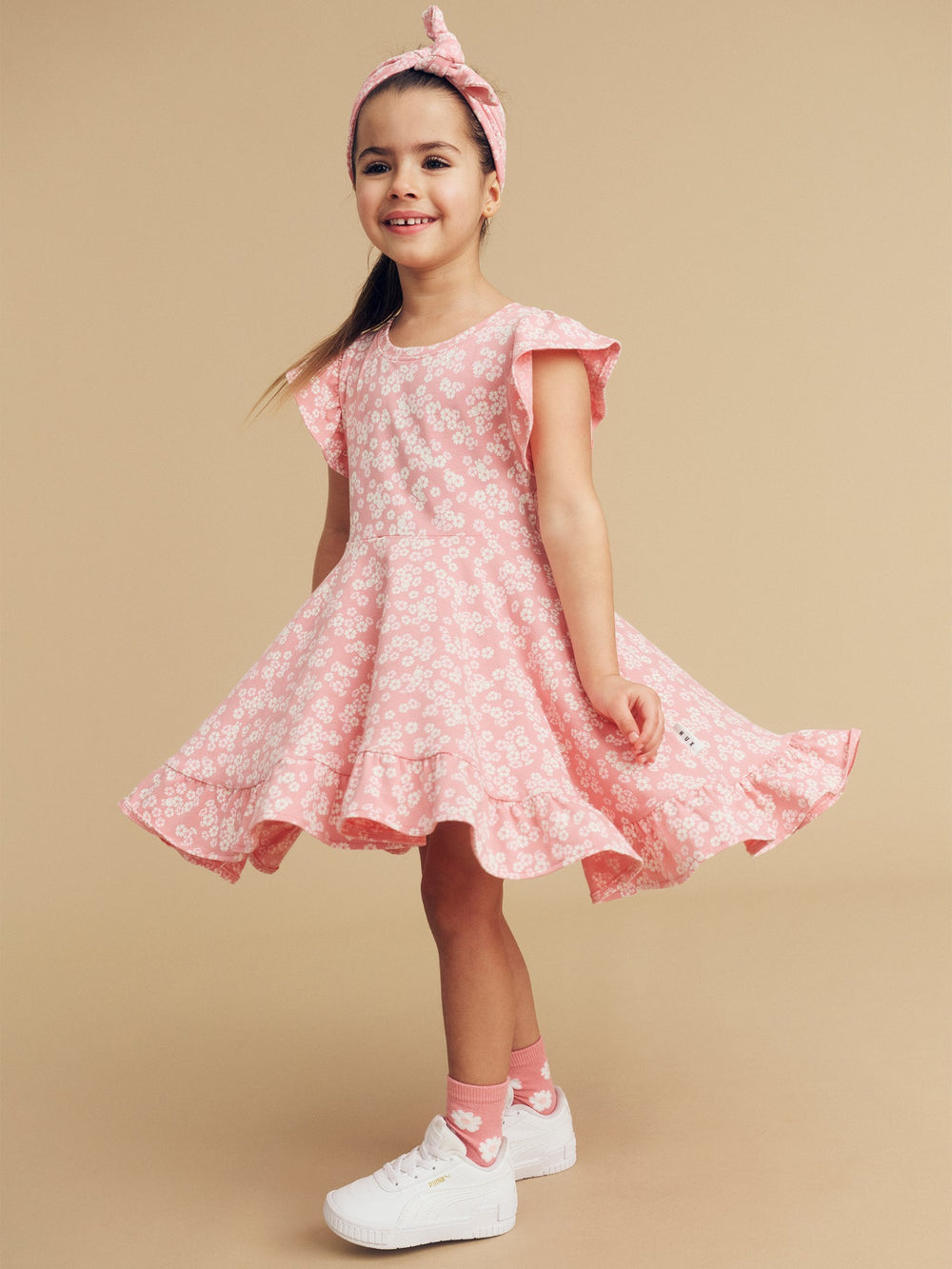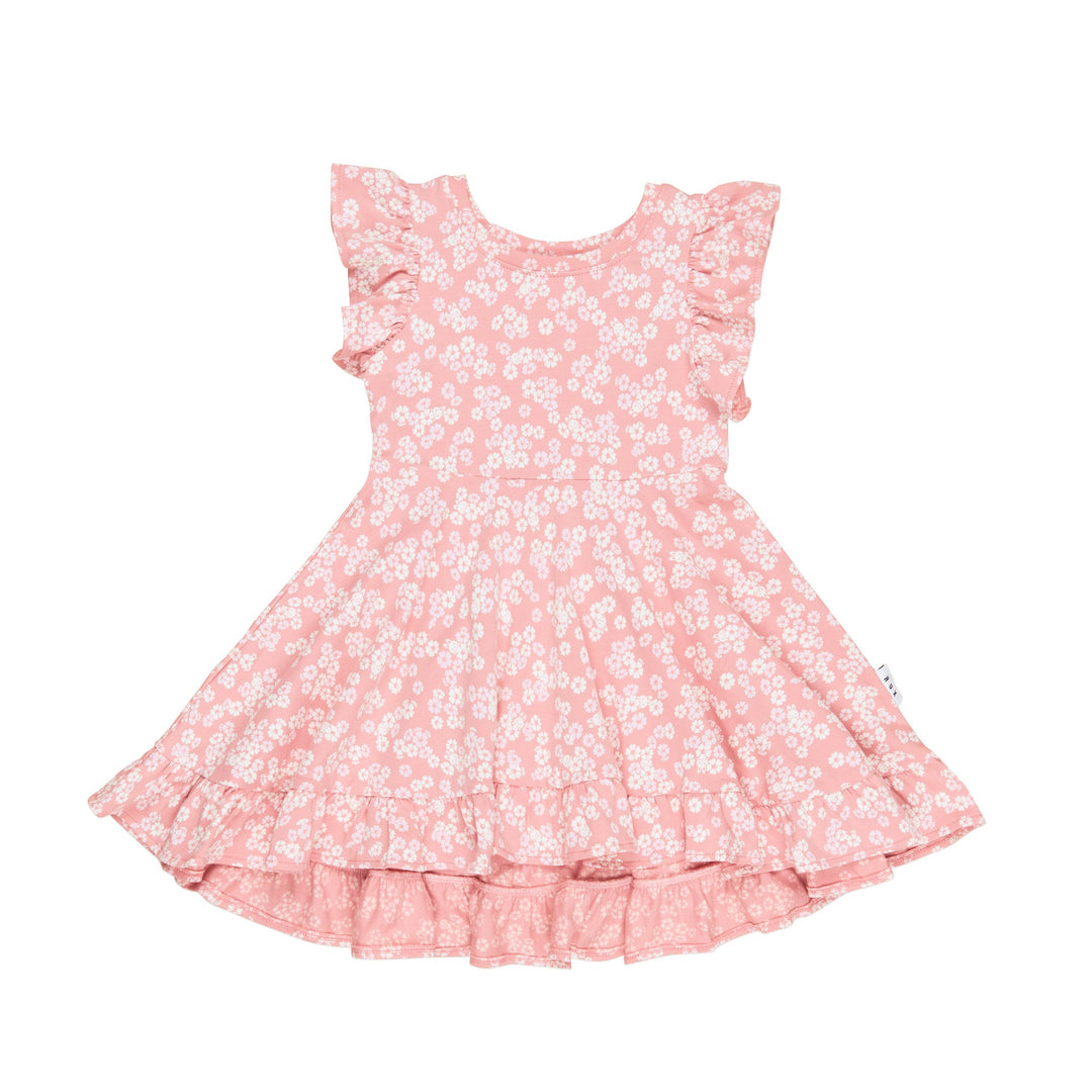 Huxbaby Peek A Boo Bunny Frill Swing Dress - Dusty Rose