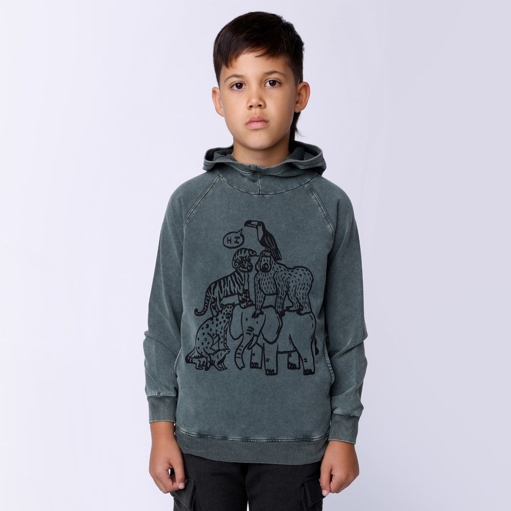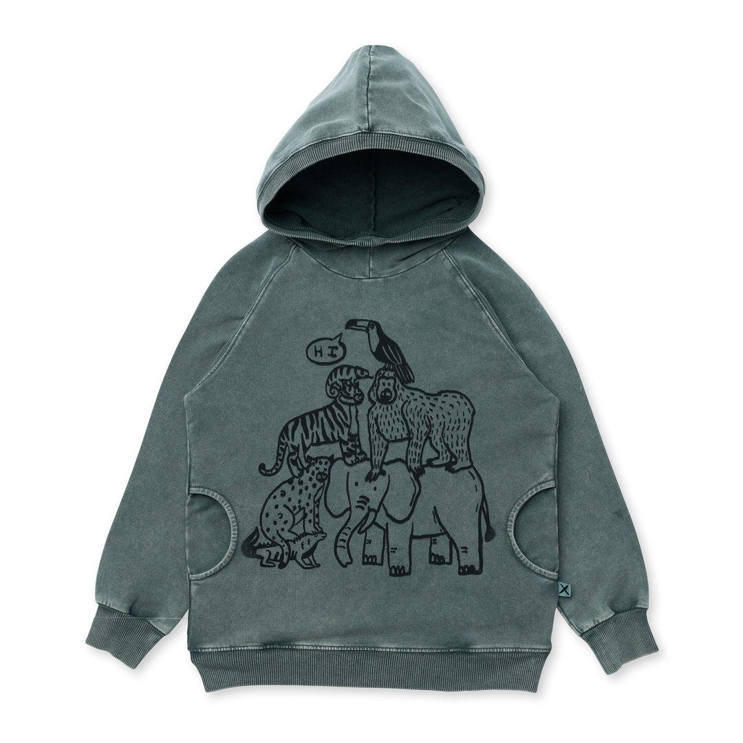 Minti Nylon Patch Furry Zip Up - Grey Marle/Green