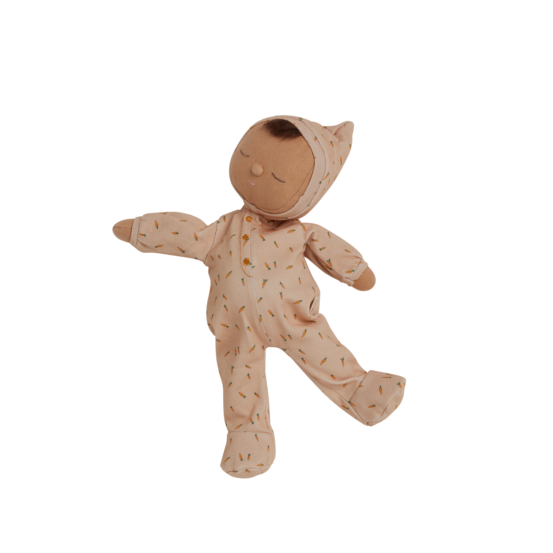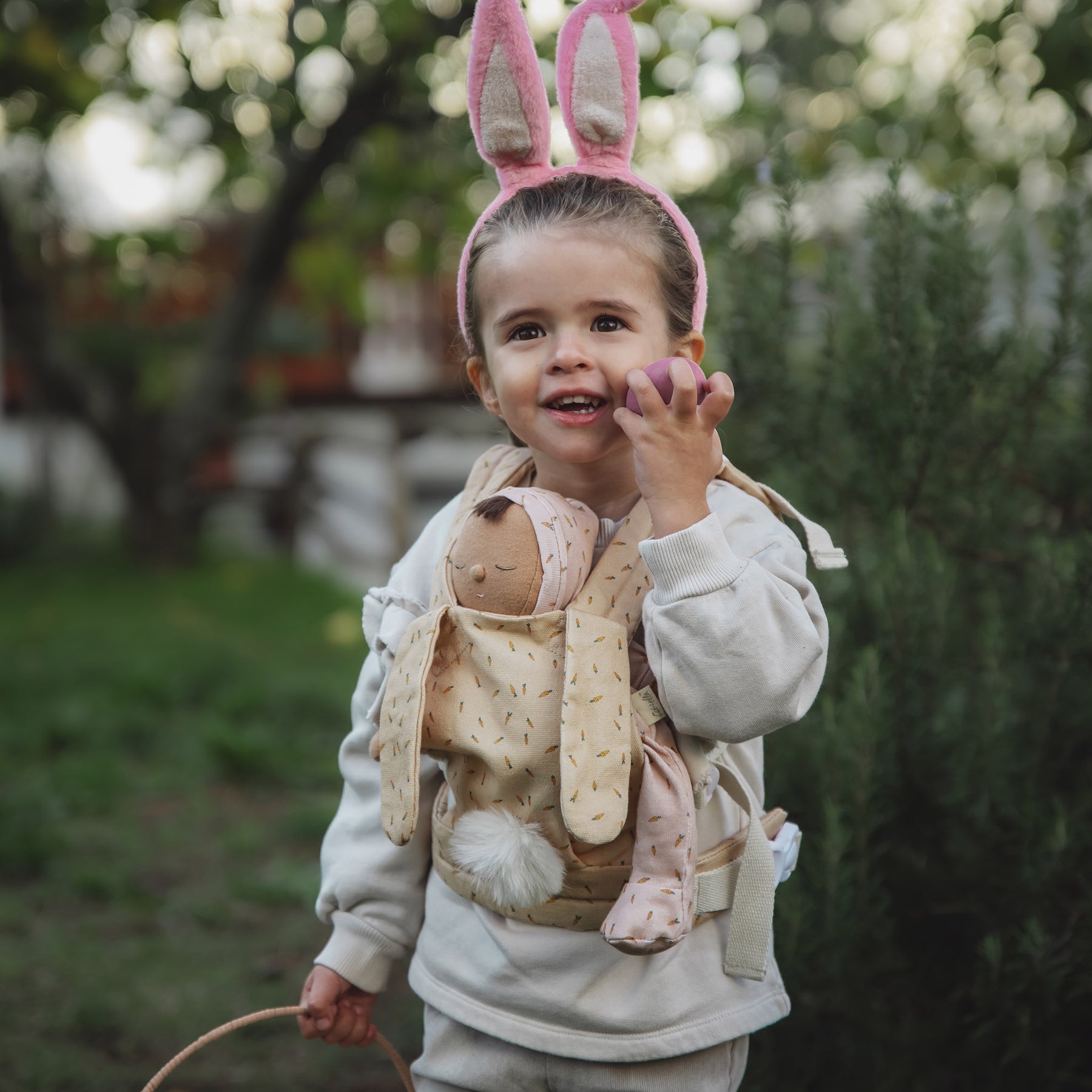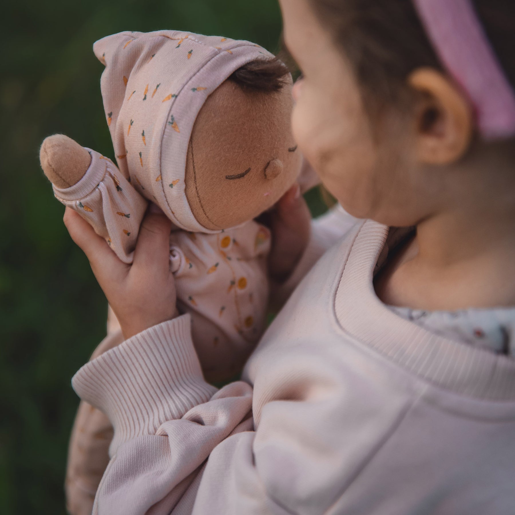 • During playtime, keep baby Blossom close with a Dinkum Dolls Cottontail Carrier or Dinkum Doll Carry Cot.