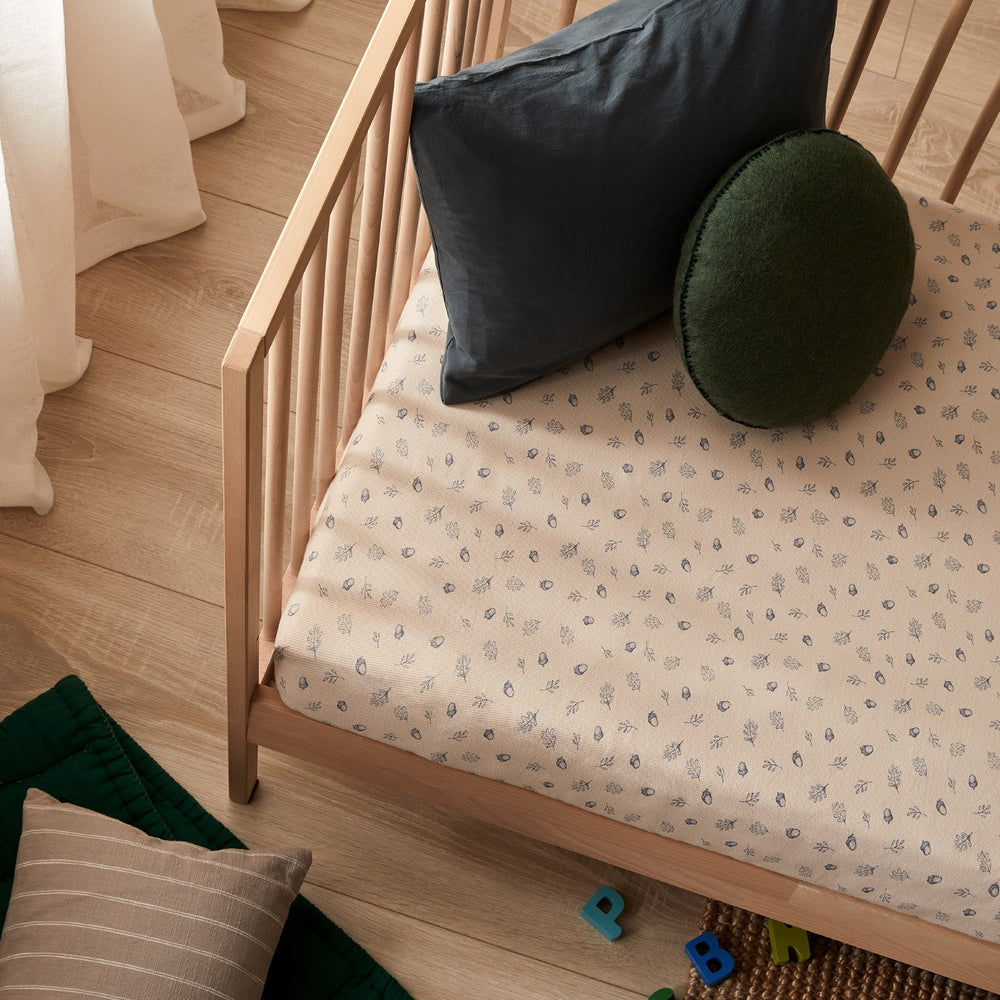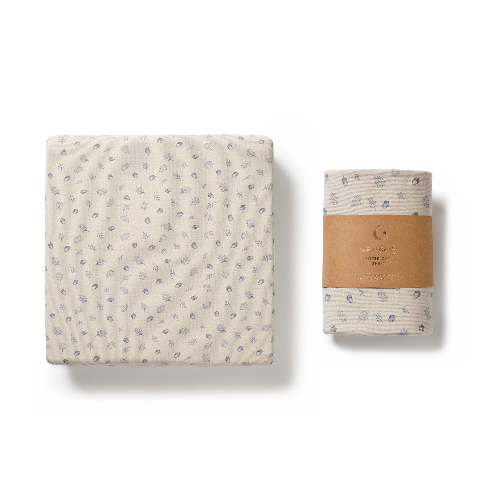 This fitted cot sheet by Wilson and Frenchy is made from organic cotton rib and features a hand-illustrated all-over print. Completely breathable, it's perfect for your baby to sleep soundly in their cot. Plus, it's stretchy so it fits a range of cots, including Australian standard size as well as Boori cots.