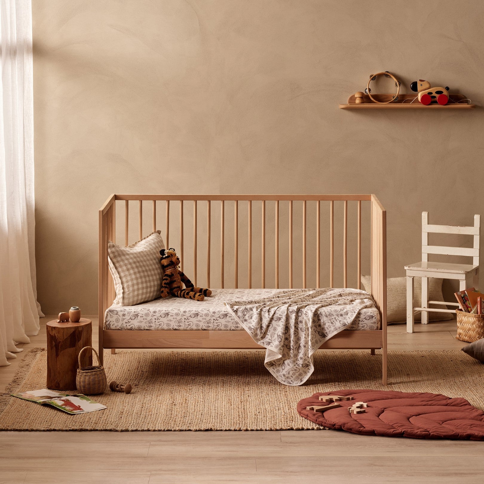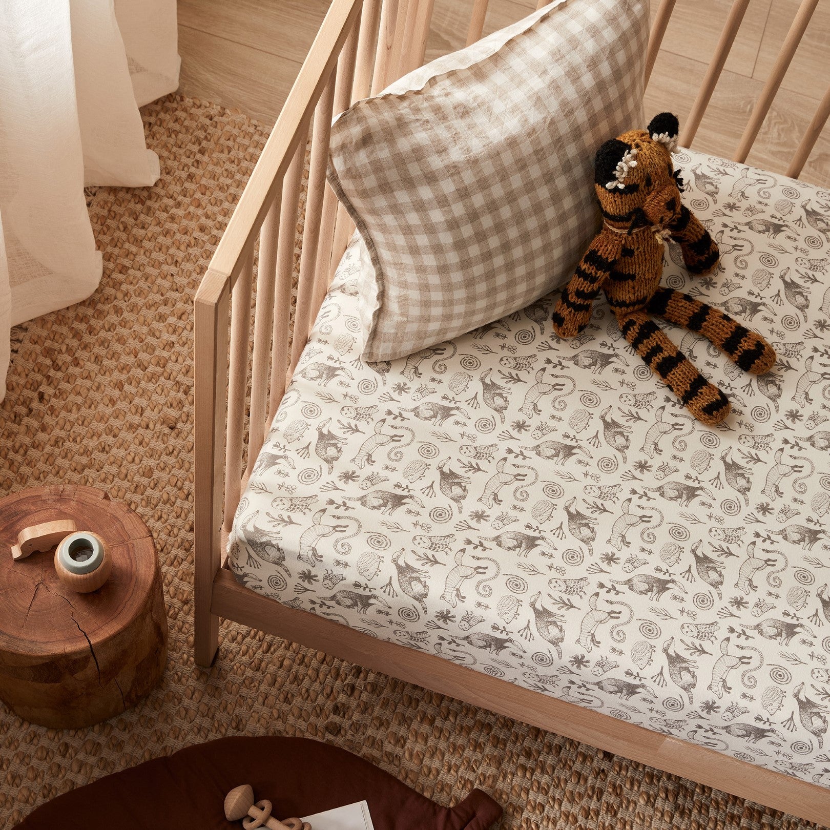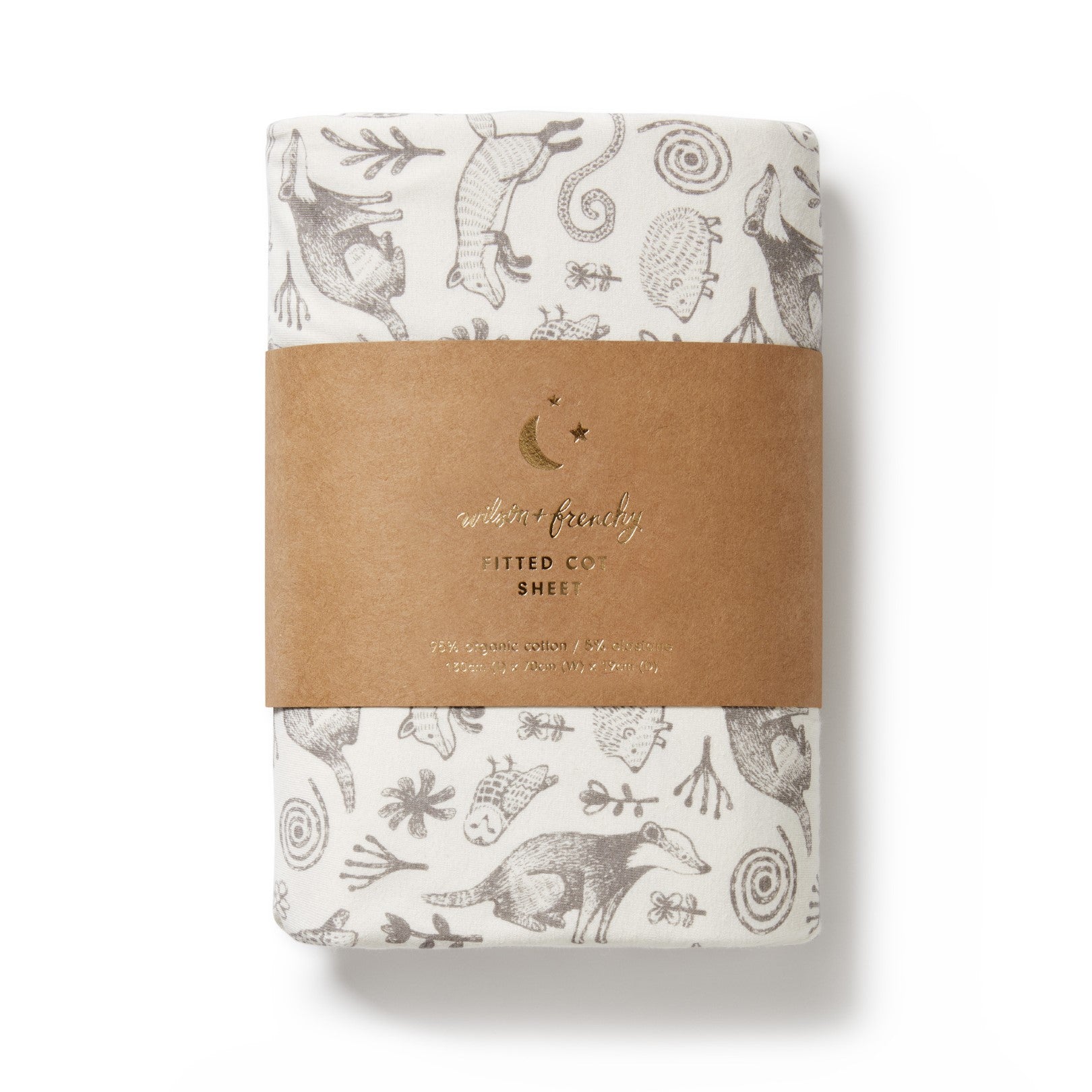 This fitted cot sheet by Wilson and Frenchy is made from organic cotton jersey and features a hand-illustrated all-over print. Completely breathable, it's perfect for your baby to sleep soundly in their cot. Plus, it's stretchy so it fits a range of cots, including Australian standard size as well as Boori cots.